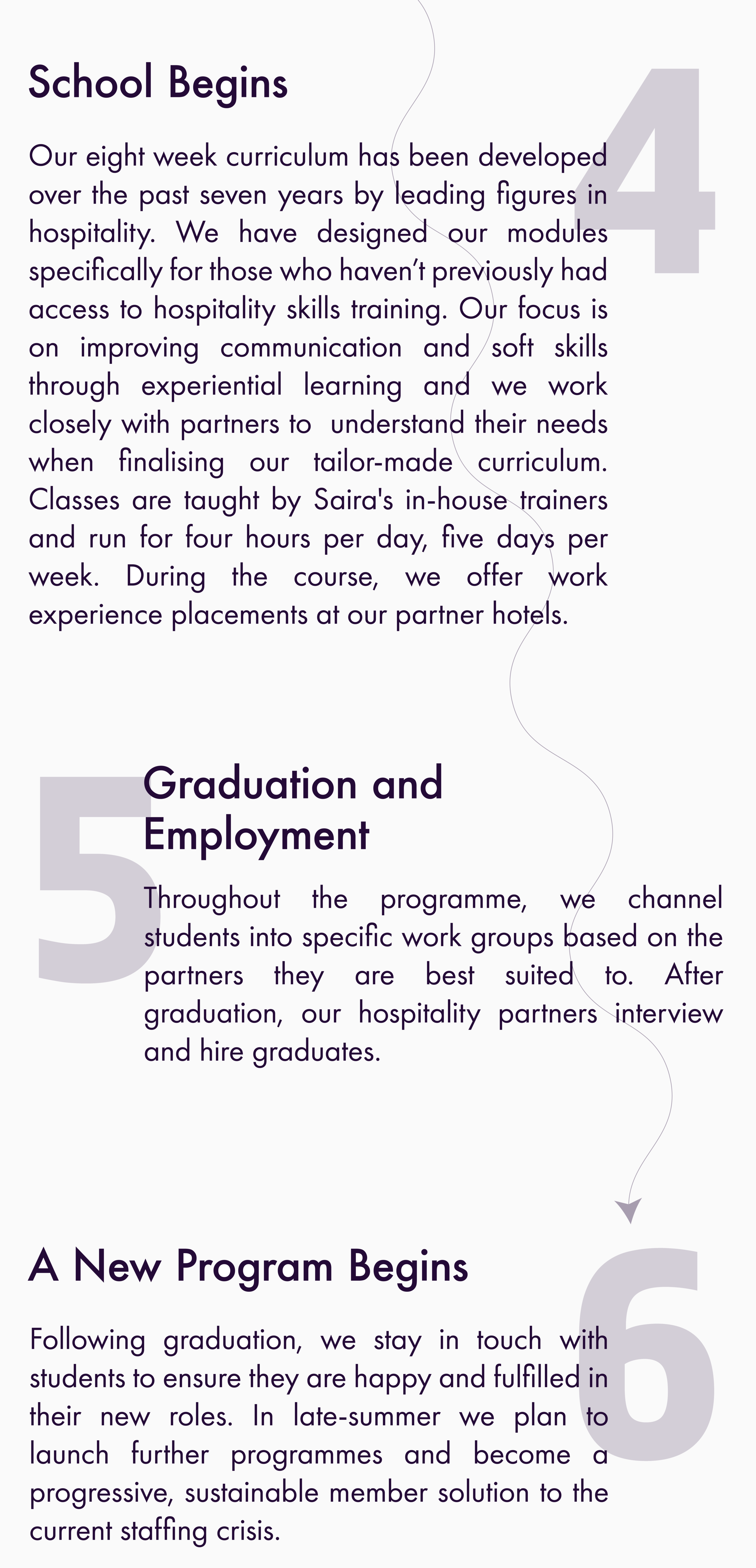 “We are thrilled to be partnering with Saira Hospitality and supporting their mission to evolve hiring practices in London. As a Collective Partner, we’re honoured to be part of such an inclusive project that will have a positive impact on people’s livelihood while launching new, lasting careers in the industry. We are excited to share our insights and experience, and be part of the process that nurtures undiscovered talent starting out in hospitality.”